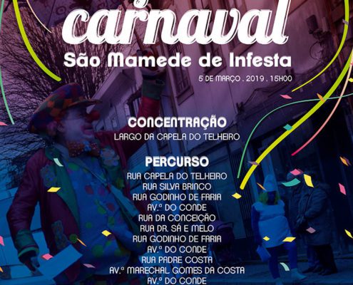 EventosO cortejo de Carnaval de São Mamede de Infesta acontece a 5 de março, pelas 15h, a iniciar no Largo da Capela do Telheiro.