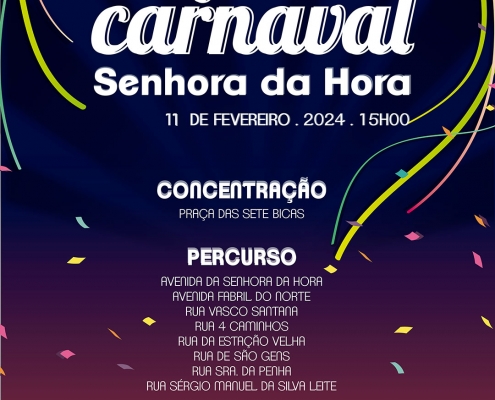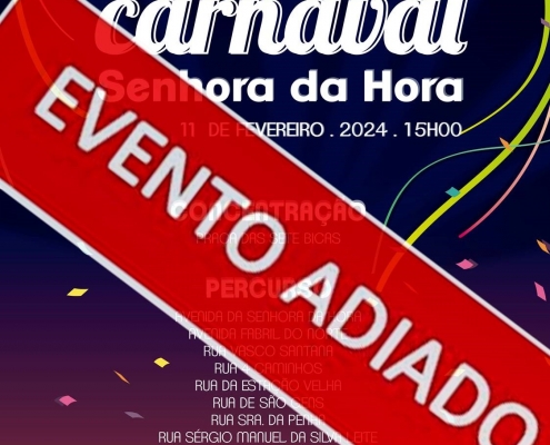 EventosDevido às previsões das condições climáticas, informamos que o Cortejo de Carnaval da Senhora da Hora será adiado.